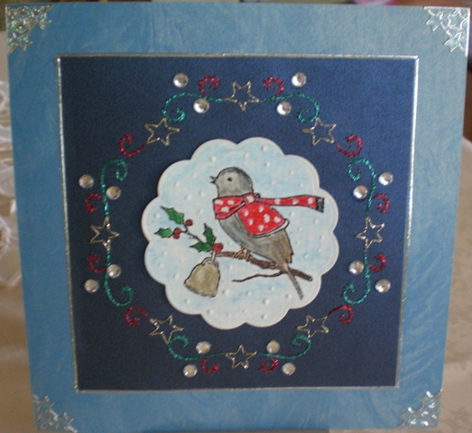 Heute ist das ideale Wetter zum Weihnachtskarten basteln. Man kann auf Balkonien sitzen und braucht keine Lampe zum sticken.